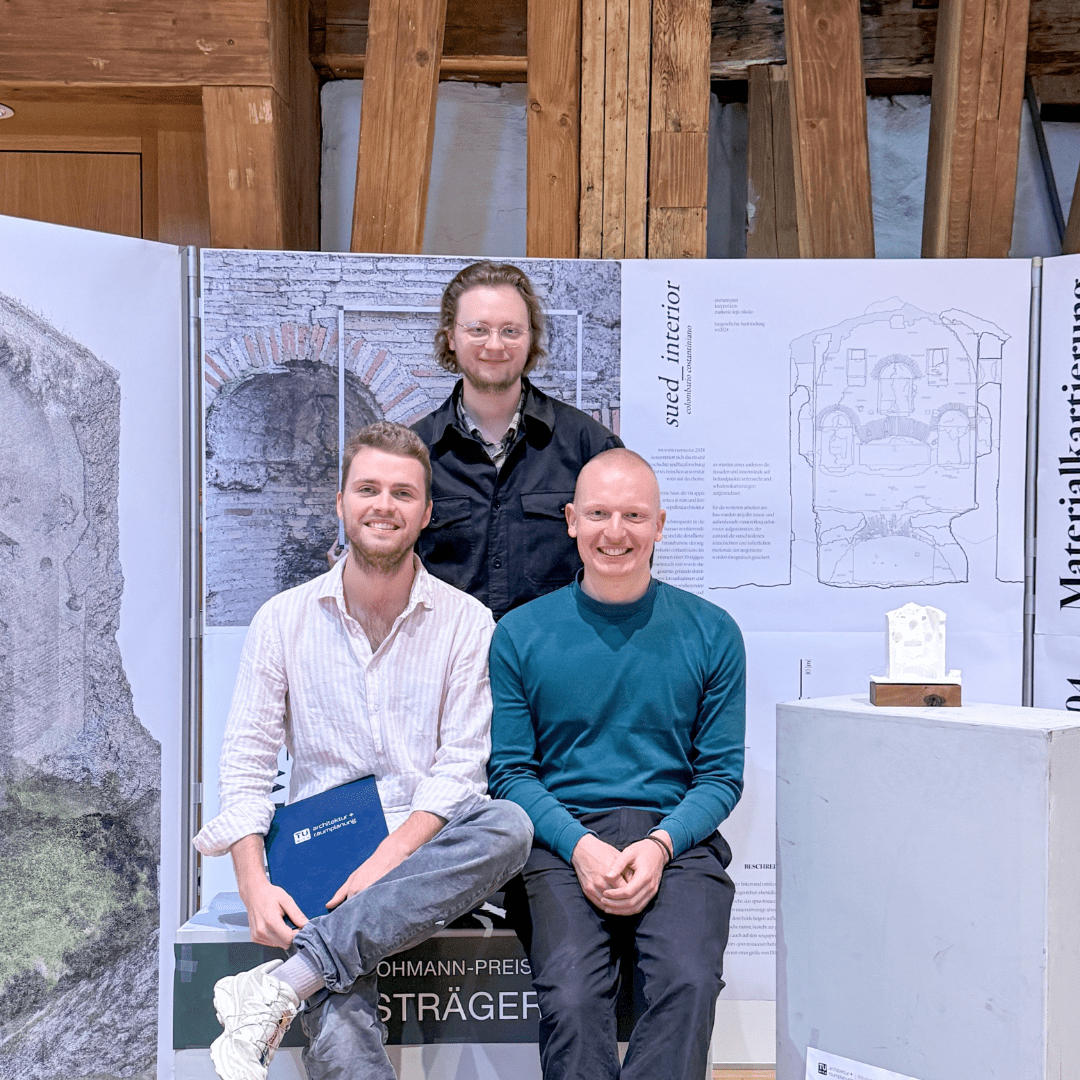 Wir freuen uns, Paul Eismann, Leon Kaeppel und Nikolas Markovic-Sejic herzlich zum diesjährigen Pfann-Ohmann-Preis zu gratulieren. Die drei Studierenden vertraten den Forschungsbereich Baugeschichte und Bauforschung erfolgreich und wurden mit dem 1. Preis ausgezeichnet.
